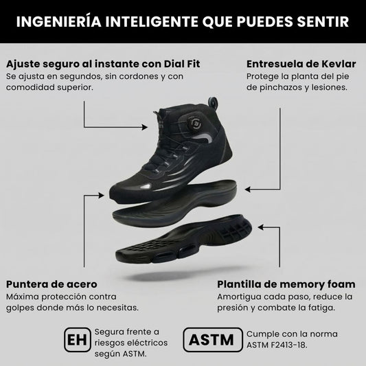 Estos zapatos de seguridad están diseñados para ofrecer protección confiable sin peso innecesario. Obtienes soporte sólido y comodidad duradera, para que tus pies se sientan mejor de principio a fin.