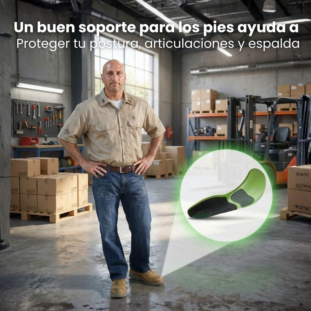 Diseñadas para absorber el impacto del talón y reducir la presión en pisos duros, estas plantillas ayudan a aliviar el dolor de pies causado por estar de pie y caminar todo el día.